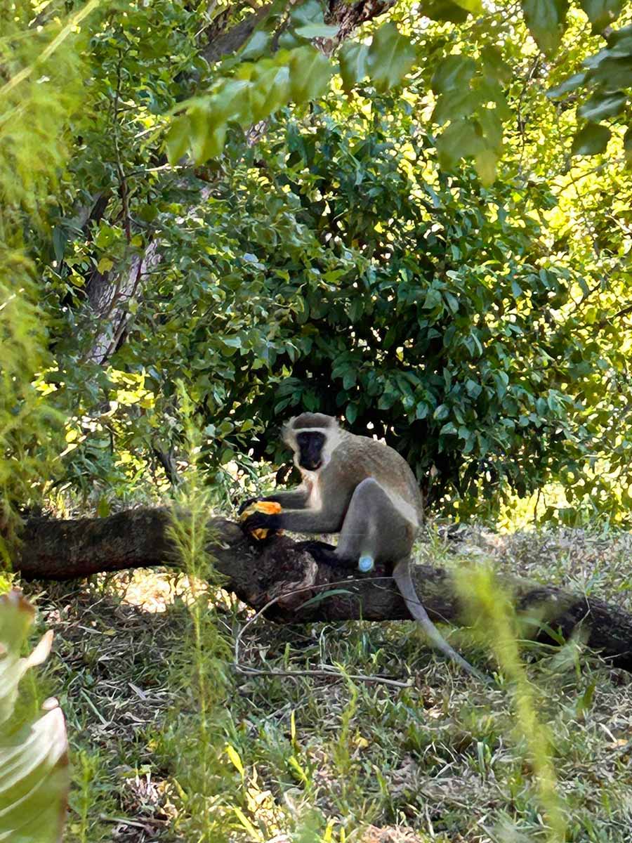 • Shaded verandahs and garden areas with trees, swings, and playful monkeys.
