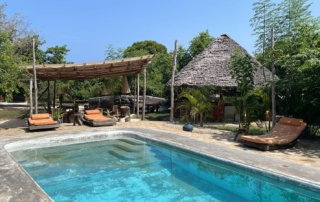 The heart of Kwa Simba features a swimming pool shaded by old dhow sails, creating a relaxing oasis. Enjoy drinks and snacks from the nearby outdoor kitchen or simply lounge by the pool, soaking up the tranquil atmosphere.