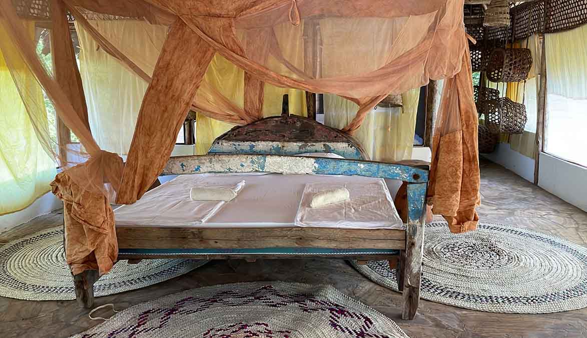 • King-size bed crafted from an old dhow (a traditional fishing boat)